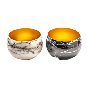 Waxinelichthouder marmer zwart, wit 2 stuks verpakt